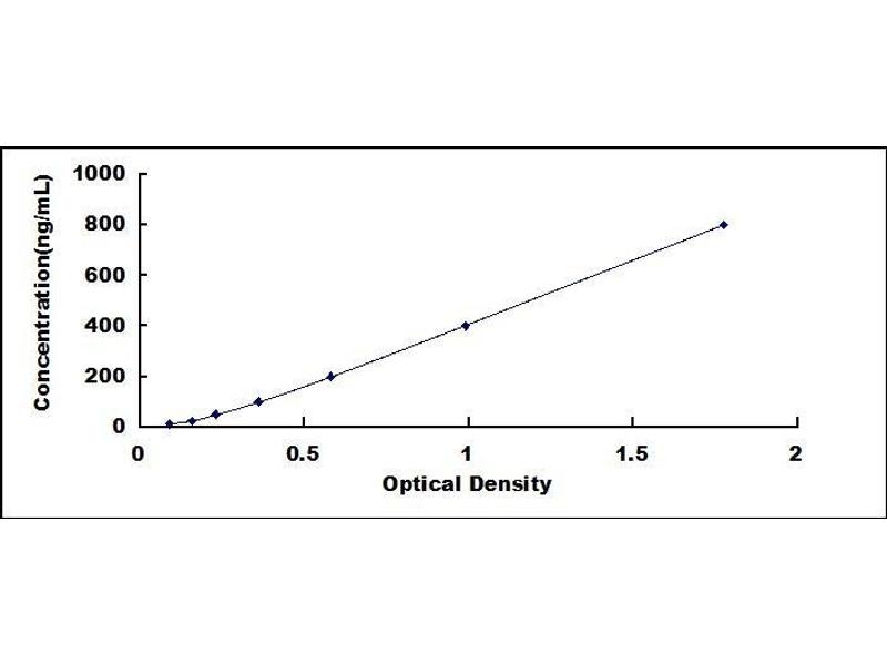 - Standard - Reconstitute the Standard with 1.0 mL of Standard Diluent, keep for 10 minutes at room temperature, shake gently (not to foam). The concentration of the standard in the stock solution is 800 ng/mL. Prepare 7 tubes containing 0.5 mL Standard Diluent and produce a double dilution series. Mix each tube thoroughly before the next transfer. Set up 7 points of diluted standard such as 800 ng/mL, 400 ng/mL, 200 ng/mL, 100 ng/mL, 50 ng/mL, 25 ng/mL, 12.5 ng/mL, and the last microcentrifuge tube with Standard Diluent is the blank as 0 ng/mL.