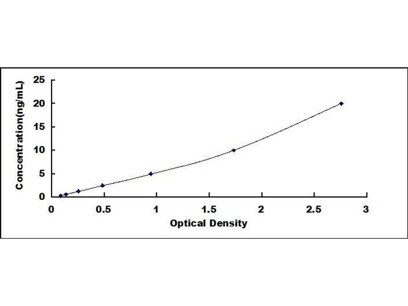- Standard - Reconstitute the Standard with 1.0 mL of Standard Diluent, keep for 10 minutes at room temperature, shake gently (not to foam). The concentration of the standard in the stock solution is 60 ng/mL. Firstly dilute the stock solution to 20 ng/mL and the diluted standard serves as the highest standard (20 ng/mL). Then prepare 7 tubes containing 0.5 mL Standard Diluent and use the diluted standard to produce a double dilution series. Mix each tube thoroughly before the next transfer. Set up 7 points of diluted standard such as 20 ng/mL, 10 ng/mL, 5 ng/mL, 2.5 ng/mL, 1.25 ng/mL, 0.625 ng/mL, 0.312 ng/mL, and the last microcentrifuge tube with Standard Diluent is the blank as 0 ng/mL.