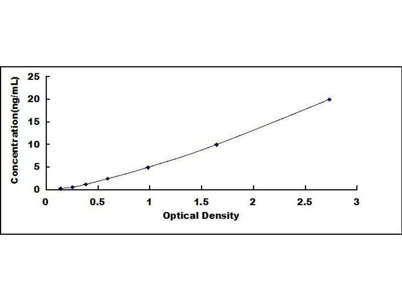 - Standard - Reconstitute the Standard with 1.0 mL of Standard Diluent, keep for 10 minutes at room temperature, shake gently (not to foam). The concentration of the standard in the stock solution is 20 ng/mL. Prepare 7 tubes containing 0.5 mL Standard Diluent and produce a double dilution series. Mix each tube thoroughly before the next transfer. Set up 7 points of diluted standard such as 20 ng/mL, 10 ng/mL, 5 ng/mL, 2.5 ng/mL, 1.25 ng/mL, 0.625 ng/mL, 0.312 ng/mL, and the last microcentrifuge tube with Standard Diluent is the blank as 0 ng/mL.