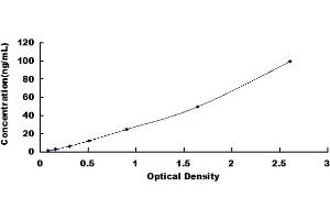 - Standard - Reconstitute the Standard with 1.0 mL of Standard Diluent, keep for 10 minutes at room temperature, shake gently (not to foam). The concentration of the standard in the stock solution is 1,000 ng/mL. Firstly dilute the stock solution to 100 ng/mL and the diluted standard serves as the highest standard (100 ng/mL). Then prepare 7 tubes containing 0.5 mL Standard Diluent and use the diluted standard to produce a double dilution series. Mix each tube thoroughly before the next transfer. Set up 7 points of diluted standard such as 100 ng/mL, 50 ng/mL, 25 ng/mL, 12.5 ng/mL, 6.25 ng/mL, 3.12 ng/mL, 1.56 ng/mL, and the last microcentrifuge tube with Standard Diluent is the blank as 0 ng/mL.