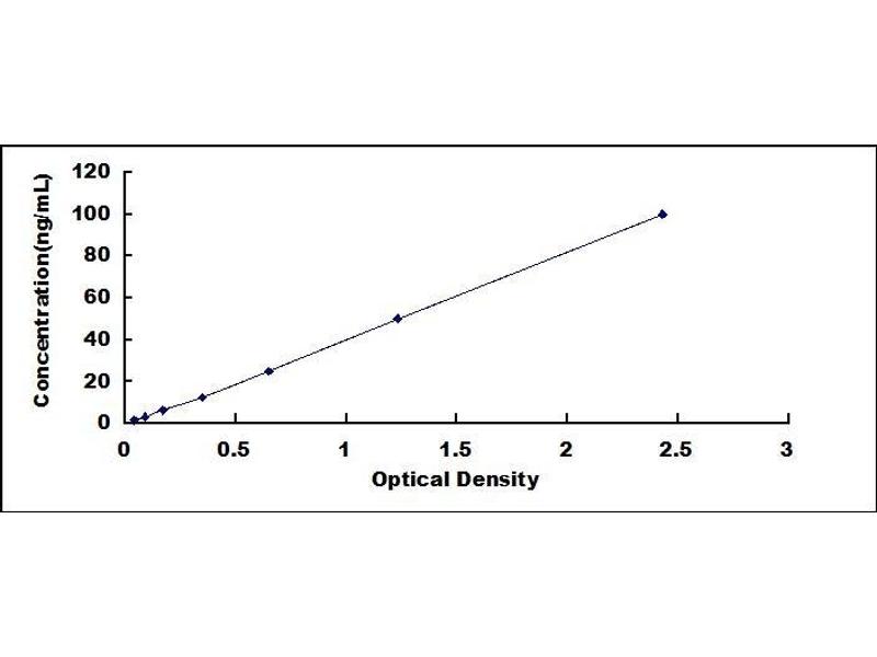 - Standard - Reconstitute the Standard with 1.0 mL of Standard Diluent, keep for 10 minutes at room temperature, shake gently (not to foam). The concentration of the standard in the stock solution is 200 ng/mL. Firstly dilute the stock solution to 100 ng/mL and the diluted standard serves as the highest standard (100 ng/mL). Then prepare 7 tubes containing 0.5 mL Standard Diluent and use the diluted standard to produce a double dilution series. Mix each tube thoroughly before the next transfer. Set up 7 points of diluted standard such as 100 ng/mL, 50 ng/mL, 25 ng/mL, 12.5 ng/mL, 6.25 ng/mL, 3.12 ng/mL, 1.56 ng/mL, and the last microcentrifuge tube with Standard Diluent is the blank as 0 ng/mL.