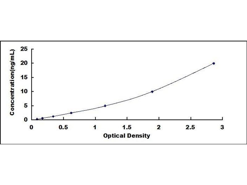 - Standard - Reconstitute the Standard with 0.5 mL of Standard Diluent, keep for 10 minutes at room temperature, shake gently (not to foam). The concentration of the standard in the stock solution is 20 ng/mL. Prepare 7 tubes containing 0.25 mL Standard Diluent and produce a double dilution series. Mix each tube thoroughly before the next transfer. Set up 7 points of diluted standard such as 20 ng/mL, 10 ng/mL, 5 ng/mL, 2.5 ng/mL, 1.25 ng/mL, 0.625 ng/mL, 0.312 ng/mL, and the last microcentrifuge tube with Standard Diluent is the blank as 0 ng/mL.