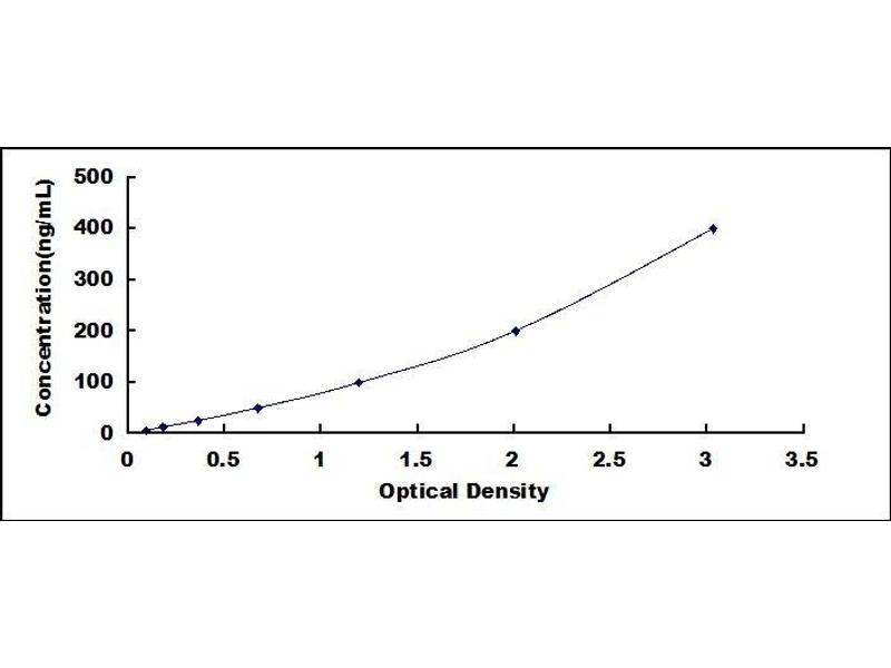 - Standard - Reconstitute the Standard with 1.0 mL of Standard Diluent, keep for 10 minutes at room temperature, shake gently (not to foam). The concentration of the standard in the stock solution is 1,600 ng/mL. Firstly dilute the stock solution to 400 ng/mL and the diluted standard serves as the highest standard (400 ng/mL). Then prepare 7 tubes containing 0.5 mL Standard Diluent and use the diluted standard to produce a double dilution series. Mix each tube thoroughly before the next transfer. Set up 7 points of diluted standard such as 400 ng/mL, 200 ng/mL, 100 ng/mL, 50 ng/mL, 25 ng/mL, 12.5 ng/mL, 6.25 ng/mL, and the last microcentrifuge tube with Standard Diluent is the blank as 0 ng/mL.