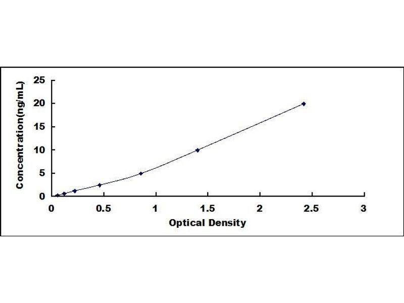 - Standard - Reconstitute the Standard with 1.0 mL of Standard Diluent, keep for 10 minutes at room temperature, shake gently (not to foam). The concentration of the standard in the stock solution is 100 ng/mL. Firstly dilute the stock solution to 20 ng/mL and the diluted standard serves as the highest standard (20 ng/mL). Then prepare 7 tubes containing 0.5 mL Standard Diluent and use the diluted standard to produce a double dilution series. Mix each tube thoroughly before the next transfer. Set up 7 points of diluted standard such as 20 ng/mL, 10 ng/mL, 5 ng/mL, 2.5 ng/mL, 1.25 ng/mL, 0.625 ng/mL, 0.312 ng/mL, and the last microcentrifuge tube with Standard Diluent is the blank as 0 ng/mL.