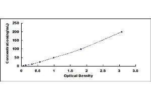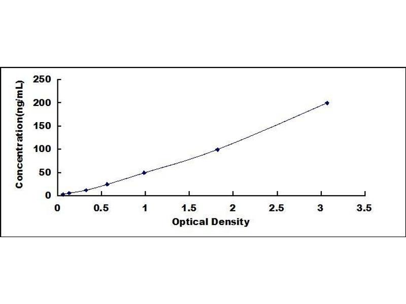 In order to make the calculation easier, we plot the O.D. value of the standard (X-axis) against the known concentration of the standard (Y-axis), although concentration is the independent variable and O.D. value is the dependent variable. However, the O.D. values of the standard curve may vary according to the conditions of assay performance (e.g. operator, pipetting technique, washing technique or temperature effects), plotting log of the data to establish standard curve for each test is recommended. Typical standard curve below is provided for reference only. -