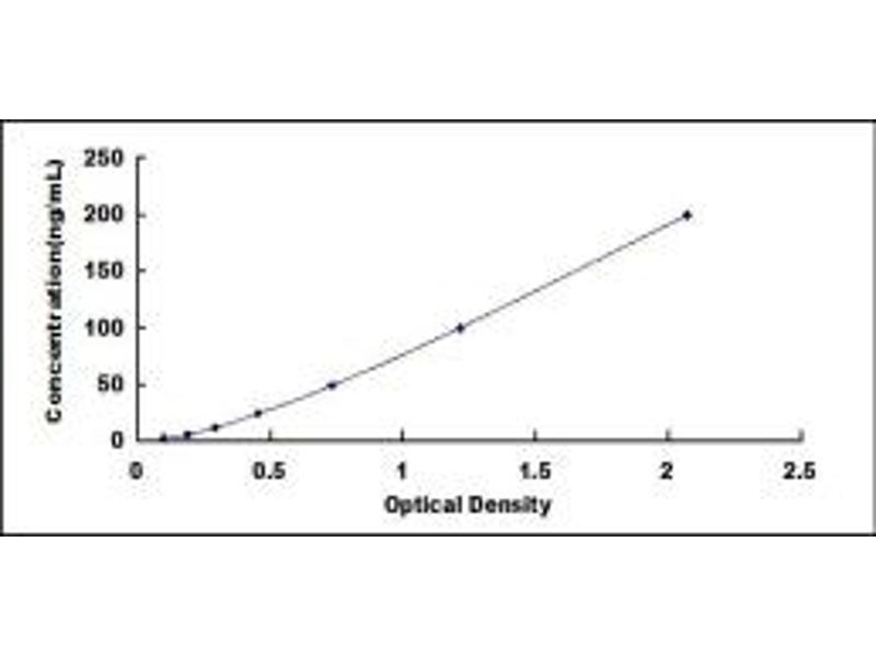 - Standard - Reconstitute the Standard with 1.0 mL of Standard Diluent, keep for 10 minutes at room temperature, shake gently (not to foam). The concentration of the standard in the stock solution is 4,000 ng/mL. Firstly dilute the stock solution to 200 ng/mL and the diluted standard serves as the highest standard (200 ng/mL). Then prepare 7 tubes containing 0.5 mL Standard Diluent and use the diluted standard to produce a double dilution series. Mix each tube thoroughly before the next transfer. Set up 7 points of diluted standard such as 200 ng/mL, 100 ng/mL, 50 ng/mL, 25 ng/mL, 12.5 ng/mL, 6.25 ng/mL, 3.12 ng/mL, and the last microcentrifuge tube with Standard Diluent is the blank as 0 ng/mL.
