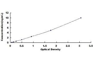 - Standard - Reconstitute the Standard with 1.0 mL of Standard Diluent, keep for 10 minutes at room temperature, shake gently (not to foam). The concentration of the standard in the stock solution is 20 ng/mL. Firstly dilute the stock solution to 10 ng/mL and the diluted standard serves as the highest standard (10 ng/mL). Then prepare 7 tubes containing 0.5 mL Standard Diluent and use the diluted standard to produce a double dilution series. Mix each tube thoroughly before the next transfer. Set up 7 points of diluted standard such as 10 ng/mL, 5 ng/mL, 2.5 ng/mL, 1.25 ng/mL, 0.625 ng/mL, 0.312 ng/mL, 0.156 ng/mL, and the last microcentrifuge tube with Standard Diluent is the blank as 0 ng/mL.