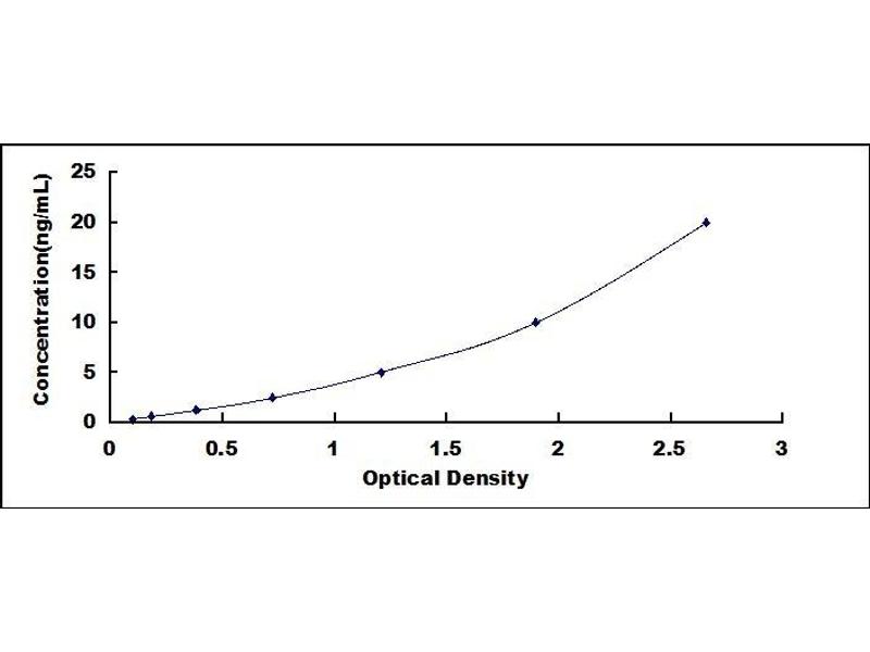 - Standard - Reconstitute the Standard with 1.0 mL of Standard Diluent, keep for 10 minutes at room temperature, shake gently (not to foam). The concentration of the standard in the stock solution is 40 ng/mL. Firstly, dilute the stock solution to 20 ng/mL. The diluted standard serves as the highest standard (20 ng/mL). Then prepare 7 tubes containing 0.5 mL Standard Diluent and produce a double dilution series. Mix each tube thoroughly before the next transfer. Set up 7 points of diluted standard such as 20 ng/mL, 10 ng/mL, 5 ng/mL, 2.5 ng/mL, 1.25 ng/mL, 0.625 ng/mL, 0.312 ng/mL, and the last microcentrifuge tube with Standard Diluent is the blank as 0 ng/mL.