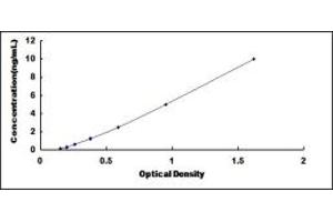 2. Standard - Reconstitute the Standard with 1.0 mL of Standard Diluent, keep for 10 minutes at room temperature, shake gently (not to foam). The concentration of the standard in the stock solution is 10 ng/mL. Prepare 7 tubes containing 0.5 mL Standard Diluent and produce a double dilution series. Mix each tube thoroughly before the next transfer. Set up 7 points of diluted standard such as 10 ng/mL, 5 ng/mL, 2.5 ng/mL, 1.25 ng/mL, 0.625 ng/mL, 0.312 ng/mL, 0.156 ng/mL, and the last microcentrifuge tube with Standard Diluent is the blank as 0 ng/mL.