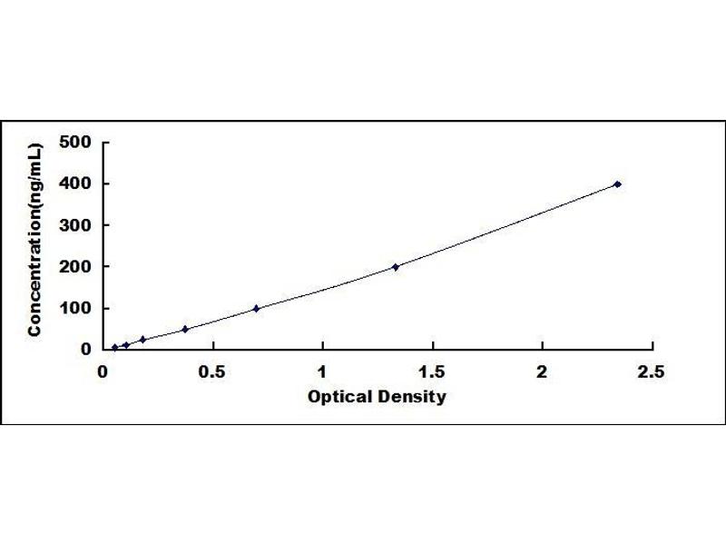- Standard - Reconstitute the Standard with 1.0 mL of Standard Diluent, keep for 10 minutes at room temperature, shake gently (not to foam). The concentration of the standard in the stock solution is 400 ng/mL. Prepare 7 tubes containing 0.5 mL Standard Diluent and produce a double dilution series. Mix each tube thoroughly before the next transfer. Set up 7 points of diluted standard such as 400 ng/mL, 200 ng/mL, 100 ng/mL, 50 ng/mL, 25 ng/mL, 12.5 ng/mL, 6.25 ng/mL, and the last microcentrifuge tube with Standard Diluent is the blank as 0 ng/mL.