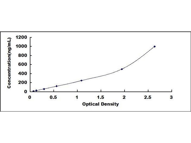 - Standard - Reconstitute the Standard with 1.0 mL of Standard Diluent, keep for 10 minutes at room temperature, shake gently (not to foam). The concentration of the standard in the stock solution is 4,000 ng/mL. Firstly dilute the stock solution to 1,000 ng/mL and the diluted standard serves as the highest standard (1,000 ng/mL). Then prepare 7 tubes containing 0.5 mL Standard Diluent and use the diluted standard to produce a double dilution series. Mix each tube thoroughly before the next transfer. Set up 7 points of diluted standard such as 1,000 ng/mL, 500 ng/mL, 250 ng/mL, 125 ng/mL, 62.5 ng/mL, 31.2 ng/mL, 15.6 ng/mL, and the last microcentrifuge tube with Standard Diluent is the blank as 0 ng/mL.