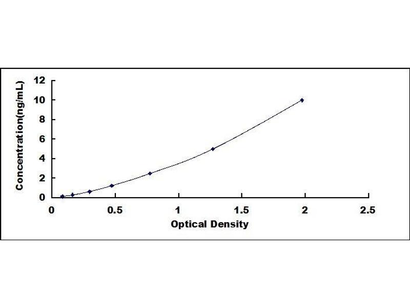 2. Standard - Reconstitute the Standard with 0.5 mL of Standard Diluent, keep for 10 minutes at room temperature, shake gently (not to foam). The concentration of the standard in the stock solution is 10 ng/mL. Prepare 7 tubes containing 0.25 mL Standard Diluent and produce a double dilution series. Mix each tube thoroughly before the next transfer. Set up 7 points of diluted standard such as 10 ng/mL, 5 ng/mL, 2.5 ng/mL, 1.25 ng/mL, 0.625 ng/mL, 0.312 ng/mL, 0.156 ng/mL, and the last microcentrifuge tube with Standard Diluent is the blank as 0 ng/mL.