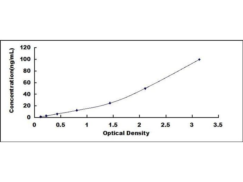 - Standard - Reconstitute the Standard with 1.0 mL of Standard Diluent, keep for 10 minutes at room temperature, shake gently (not to foam). The concentration of the standard in the stock solution is 100 ng/mL. Prepare 7 tubes containing 0.5 mL Standard Diluent and produce a double dilution series. Mix each tube thoroughly before the next transfer. Set up 7 points of diluted standard such as 100 ng/mL, 50 ng/mL, 25 ng/mL, 12.5 ng/mL, 6.25 ng/mL, 3.12 ng/mL, 1.56 ng/mL, and the last microcentrifuge tube with Standard Diluent is the blank as 0 ng/mL.