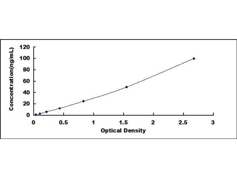 - Standard - Reconstitute the Standard with 1.0 mL of Standard Diluent, keep for 10 minutes at room temperature, shake gently (not to foam). The concentration of the standard in the stock solution is 400 ng/mL. Firstly dilute the stock solution to 100 ng/mL and the diluted standard serves as the highest standard (100 ng/mL). Then prepare 7 tubes containing 0.5 mL Standard Diluent and use the diluted standard to produce a double dilution series. Mix each tube thoroughly before the next transfer. Set up 7 points of diluted standard such as 100 ng/mL, 50 ng/mL, 25 ng/mL, 12.5 ng/mL, 6.25 ng/mL, 3.12 ng/mL, 1.56 ng/mL, and the last microcentrifuge tube with Standard Diluent is the blank as 0 ng/mL.