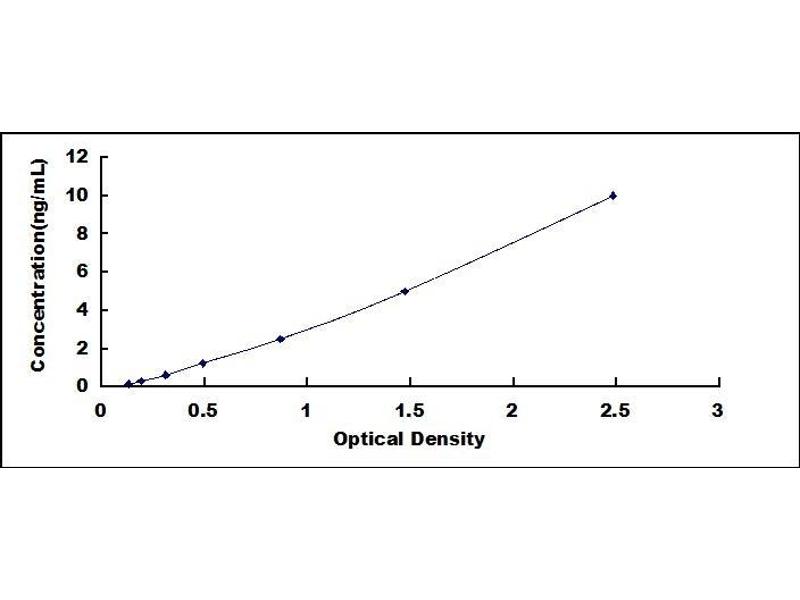 - Standard - Reconstitute the Standard with 1.0 mL of Standard Diluent, keep for 10 minutes at room temperature, shake gently (not to foam). The concentration of the standard in the stock solution is 50 ng/mL. Firstly dilute the stock solution to 10 ng/mL and the diluted standard serves as the highest standard (10 ng/mL). Then prepare 7 tubes containing 0.5 mL Standard Diluent and use the diluted standard to produce a double dilution series. Mix each tube thoroughly before the next transfer. Set up 7 points of diluted standard such as 10 ng/mL, 5 ng/mL, 2.5 ng/mL, 1.25 ng/mL, 0.625 ng/mL, 0.312 ng/mL, 0.156 ng/mL, and the last microcentrifuge tube with Standard Diluent is the blank as 0 ng/mL.