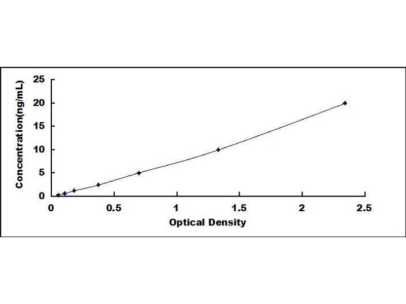 - Standard - Reconstitute the Standard with 1.0 mL of Standard Diluent, keep for 10 minutes at room temperature, shake gently (not to foam). The concentration of the standard in the stock solution is 160 ng/mL. Firstly dilute the stock solution to 20 ng/mL and the diluted standard serves as the highest standard (20 ng/mL). Then prepare 7 tubes containing 0.5 mL Standard Diluent and use the diluted standard to produce a double dilution series. Mix each tube thoroughly before the next transfer. Set up 7 points of diluted standard such as 20 ng/mL, 10 ng/mL, 5 ng/mL, 2.5 ng/mL, 1.25 ng/mL, 0.625 ng/mL, 0.312 ng/mL, and the last microcentrifuge tube with Standard Diluent is the blank as 0 ng/mL.