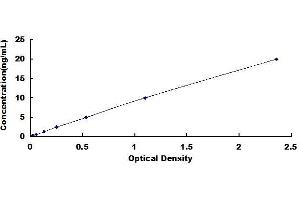 - Standard - Reconstitute the Standard with 1.0 mL of Standard Diluent, keep for 10 minutes at room temperature, shake gently (not to foam). The concentration of the standard in the stock solution is 40 ng/mL. Firstly dilute the stock solution to 20 ng/mL and the diluted standard serves as the highest standard (20 ng/mL). Then prepare 7 tubes containing 0.5 mL Standard Diluent and use the diluted standard to produce a double dilution series. Mix each tube thoroughly before the next transfer. Set up 7 points of diluted standard such as 20 ng/mL, 10 ng/mL, 5 ng/mL, 2.5 ng/mL, 1.25 ng/mL, 0.625 ng/mL, 0.312 ng/mL, and the last microcentrifuge tube with Standard Diluent is the blank as 0 ng/mL.