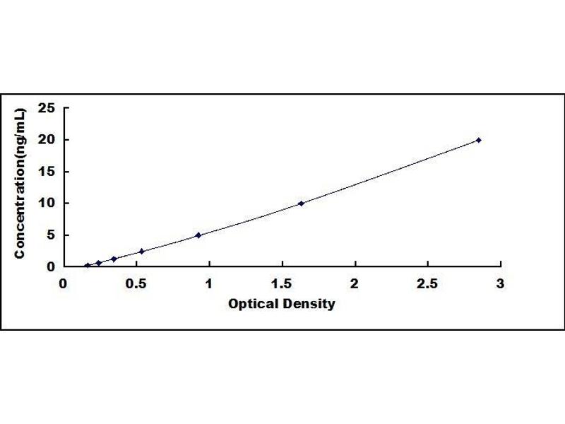 - Standard - Reconstitute the Standard with 0.5 mL of Standard Diluent, keep for 10 minutes at room temperature, shake gently (not to foam). The concentration of the standard in the stock solution is 20 ng/mL. Prepare 7 tubes containing 0.25 mL Standard Diluent and produce a double dilution series. Mix each tube thoroughly before the next transfer. Set up 7 points of diluted standard such as 20 ng/mL, 10 ng/mL, 5 ng/mL, 2.5 ng/mL, 1.25 ng/mL, 0.625 ng/mL, 0.312 ng/mL, and the last microcentrifuge tube with Standard Diluent is the blank as 0 ng/mL.