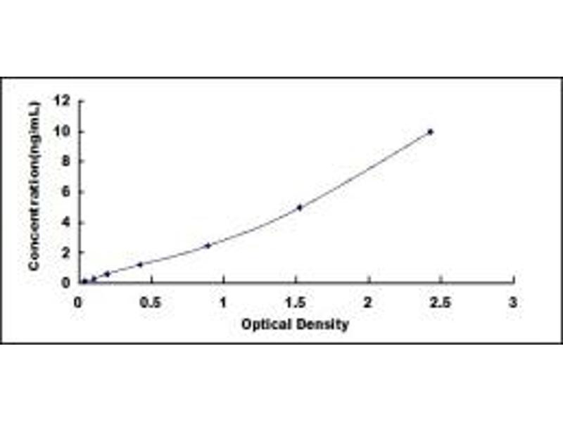 - Standard - Reconstitute the Standard with 1.0 mL of Standard Diluent, keep for 10 minutes at room temperature, shake gently (not to foam). The concentration of the standard in the stock solution is 40 ng/mL. Firstly dilute the stock solution to 10 ng/mL and the diluted standard serves as the highest standard (10 ng/mL). Then prepare 7 tubes containing 0.5 mL Standard Diluent and use the diluted standard to produce a double dilution series. Mix each tube thoroughly before the next transfer. Set up 7 points of diluted standard such as 10 ng/mL, 5 ng/mL, 2.5 ng/mL, 1.25 ng/mL, 0.625 ng/mL, 0.312 ng/mL, 0.156 ng/mL, and the last microcentrifuge tube with Standard Diluent is the blank as 0 ng/mL.