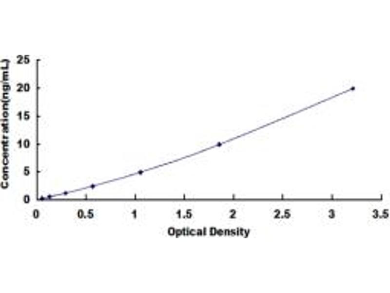 2. Standard - Reconstitute the Standard with 1.0 mL of Standard Diluent, keep for 10 minutes at room temperature, shake gently (not to foam). The concentration of the standard in the stock solution is 20 ng/mL. Prepare 7 tubes containing 0.5 mL Standard Diluent and produce a double dilution series. Mix each tube thoroughly before the next transfer. Set up 7 points of diluted standard such as 20 ng/mL, 10 ng/mL, 5 ng/mL, 2.5 ng/mL, 1.25 ng/mL, 0.625 ng/mL, 0.312 ng/mL, and the last microcentrifuge tube with Standard Diluent is the blank as 0 ng/mL.