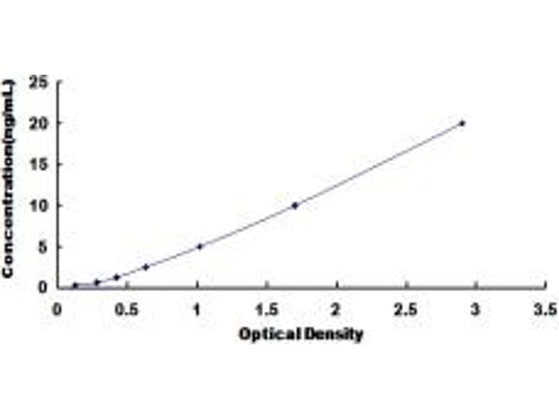 - Standard - Reconstitute the Standard with 1.0 mL of Standard Diluent, keep for 10 minutes at room temperature, shake gently (not to foam). The concentration of the standard in the stock solution is 160 ng/mL. Firstly dilute the stock solution to 20 ng/mL and the diluted standard serves as the highest standard (20 ng/mL). Then prepare 7 tubes containing 0.5 mL Standard Diluent and use the diluted standard to produce a double dilution series. Mix each tube thoroughly before the next transfer. Set up 7 points of diluted standard such as 20 ng/mL, 10 ng/mL, 5 ng/mL, 2.5 ng/mL, 1.25 ng/mL, 0.625 ng/mL, 0.312 ng/mL, and the last microcentrifuge tube with Standard Diluent is the blank as 0 ng/mL.
