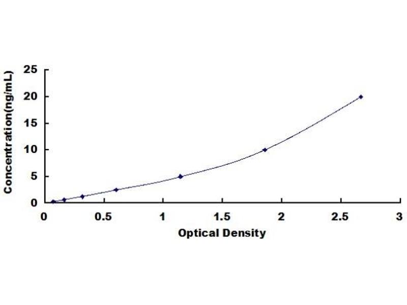 - Standard - Reconstitute the Standard with 1.0 mL of Standard Diluent, keep for 10 minutes at room temperature, shake gently (not to foam). The concentration of the standard in the stock solution is 80 ng/mL. Firstly dilute the stock solution to 20 ng/mL and the diluted standard serves as the highest standard (20 ng/mL). Then prepare 7 tubes containing 0.5 mL Standard Diluent and use the diluted standard to produce a double dilution series. Mix each tube thoroughly before the next transfer. Set up 7 points of diluted standard such as 20 ng/mL, 10 ng/mL, 5 ng/mL, 2.5 ng/mL, 1.25 ng/mL, 0.625 ng/mL, 0.312 ng/mL, and the last microcentrifuge tube with Standard Diluent is the blank as 0 ng/mL.