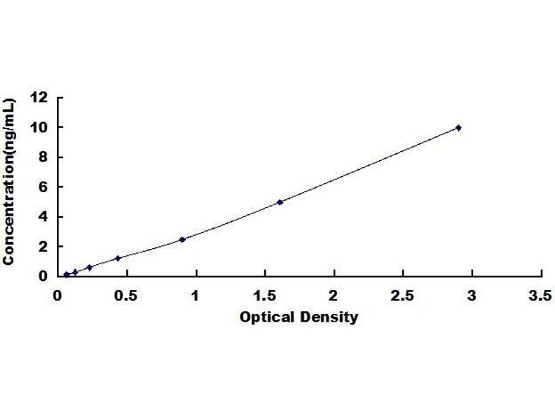 - Standard - Reconstitute the Standard with 1.0 mL of Standard Diluent, keep for 10 minutes at room temperature, shake gently (not to foam). The concentration of the standard in the stock solution is 200 ng/mL. Firstly dilute the stock solution to 10 ng/mL and the diluted standard serves as the highest standard (10 ng/mL). Then prepare 7 tubes containing 0.5 mL Standard Diluent and use the diluted standard to produce a double dilution series. Mix each tube thoroughly before the next transfer. Set up 7 points of diluted standard such as 10 ng/mL, 5 ng/mL, 2.5 ng/mL, 1.25 ng/mL, 0.625 ng/mL, 0.312 ng/mL, 0.156 ng/mL, and the last microcentrifuge tube with Standard Diluent is the blank as 0 ng/mL.