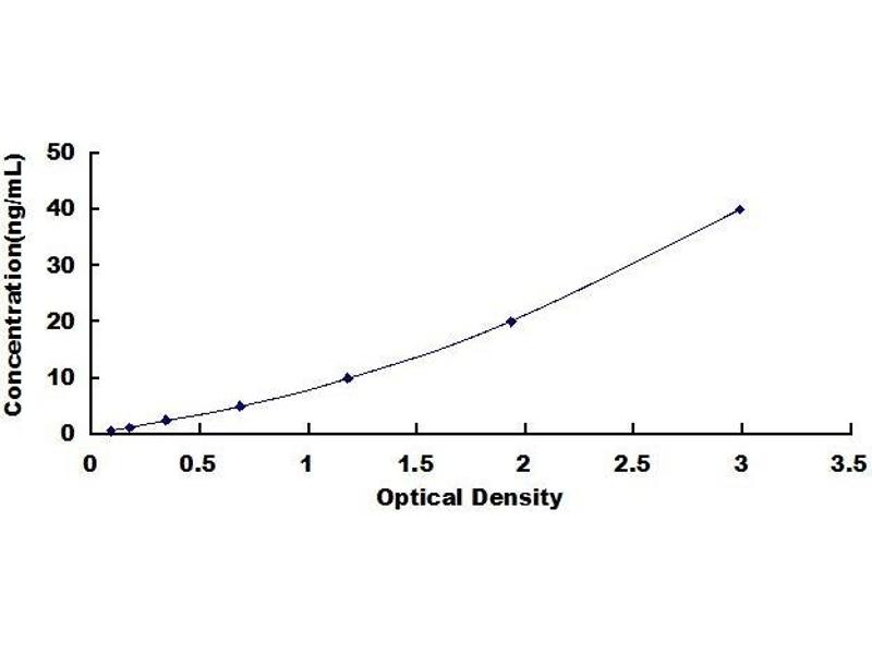 - Standard - Reconstitute the Standard with 1.0 mL of Standard Diluent, keep for 10 minutes at room temperature, shake gently (not to foam). The concentration of the standard in the stock solution is 400 ng/mL. Firstly dilute the stock solution to 40 ng/mL and the diluted standard serves as the highest standard (40 ng/mL). Then prepare 7 tubes containing 0.5 mL Standard Diluent and use the diluted standard to produce a double dilution series. Mix each tube thoroughly before the next transfer. Set up 7 points of diluted standard such as 40 ng/mL, 20 ng/mL, 10 ng/mL, 5 ng/mL, 2.5 ng/mL, 1.25 ng/mL, 0.625 ng/mL, and the last microcentrifuge tube with Standard Diluent is the blank as 0 ng/mL.