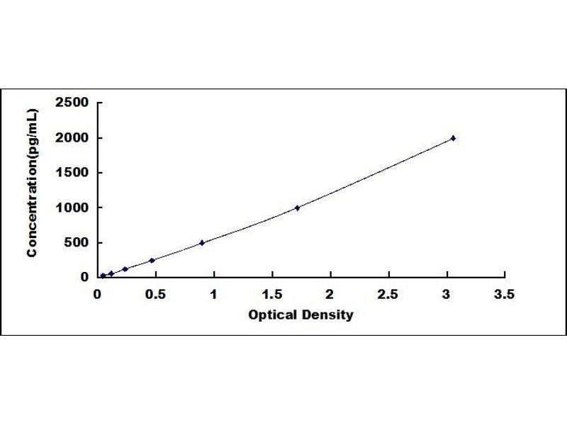 In order to make the calculation easier, we plot the O.D. value of the standard (X-axis) against the log of concentration of the standard (Y-axis), although concentration is the independent variable and O.D. value is the dependent variable. The O.D. values of the standard curve may vary according to the conditions of assay performance (e.g. operator, pipetting technique, washing technique or temperature effects). Typical standard curve below is provided for reference only. -