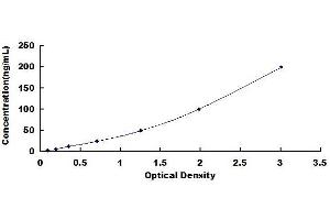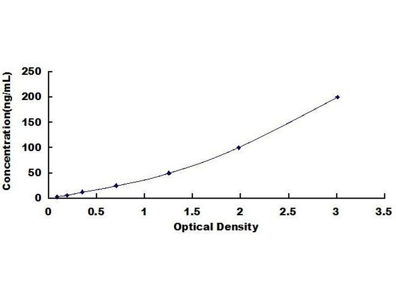 In order to make the calculation easier, we plot the O.D. value of the standard (X-axis) against the known concentration of the standard (Y-axis), although concentration is the independent variable and O.D. value is the dependent variable. However, the O.D. values of the standard curve may vary according to the conditions of assay performance (e.g. operator, pipetting technique, washing technique or temperature effects), plotting log of the data to establish standard curve for each test is recommended. Typical standard curve below is provided for reference only. -