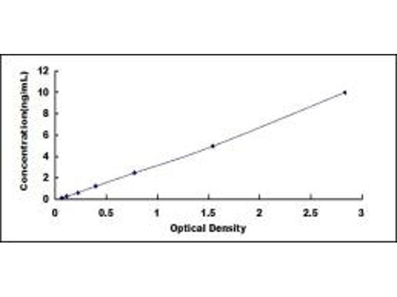 - Standard - Reconstitute the Standard with 1.0 mL of Standard Diluent, keep for 10 minutes at room temperature, shake gently (not to foam). The concentration of the standard in the stock solution is 50 ng/mL. Firstly dilute the stock solution to 10 ng/mL and the diluted standard serves as the highest standard (10 ng/mL). Then prepare 7 tubes containing 0.5 mL Standard Diluent and use the diluted standard to produce a double dilution series. Mix each tube thoroughly before the next transfer. Set up 7 points of diluted standard such as 10 ng/mL, 5 ng/mL, 2.5 ng/mL, 1.25 ng/mL, 0.625 ng/mL, 0.312 ng/mL, 0.156 ng/mL, and the last microcentrifuge tube with Standard Diluent is the blank as 0 ng/mL.
