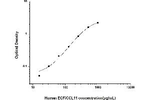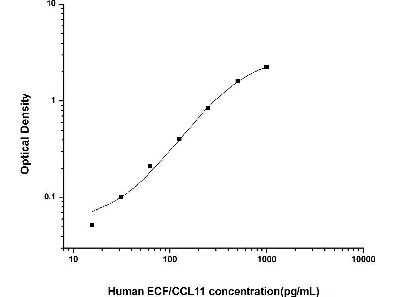 Intra-assay Precision (Precision within an assay): 3 samples with low, mid range and high level Human ECF/CCL11 were tested 20 times on one plate, respectively. Inter-assay Precision (Precision between assays): 3 samples with low, mid range and high level Human ECF/CCL11 were tested on 3 different plates, 20 replicates in each plate. Both intra-CV and inter-CV are < 10 %.