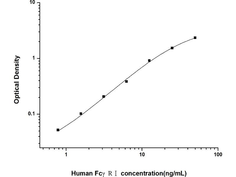 Intra-assay Precision (Precision within an assay): 3 samples with low, mid range and high level Human FcγRI were tested 20 times on one plate, respectively. Inter-assay Precision (Precision between assays): 3 samples with low, mid range and high level Human FcγRI were tested on 3 different plates, 20 replicates in each plate. Both intra-CV and inter-CV are < 10 %.