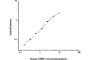 Intra-assay Precision (Precision within an assay): 3 samples with low, mid range and high level Human CDK6 were tested 20 times on one plate, respectively. Inter-assay Precision (Precision between assays): 3 samples with low, mid range and high level Human CDK6 were tested on 3 different plates, 20 replicates in each plate. Both intra-CV and inter-CV are < 10 %.