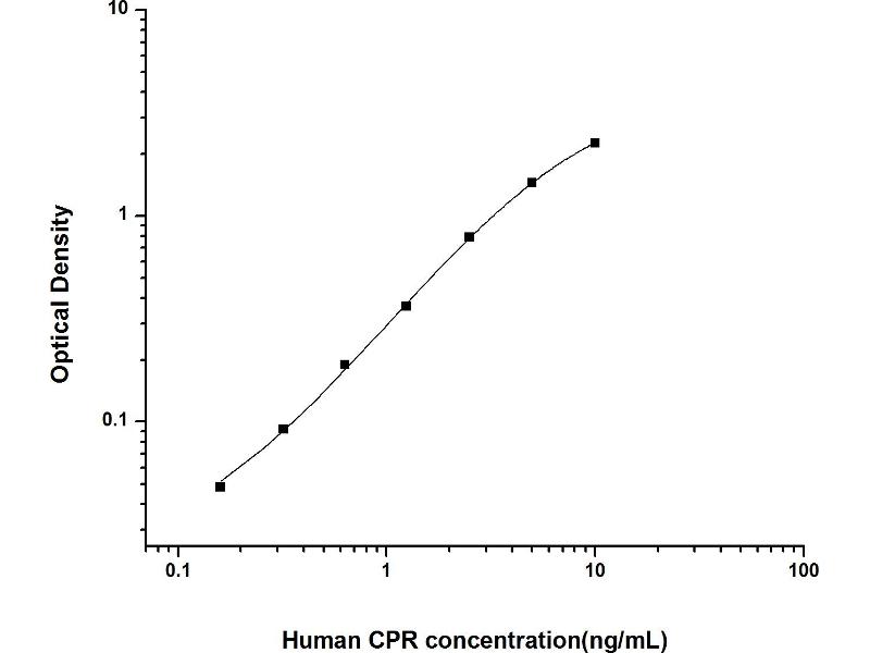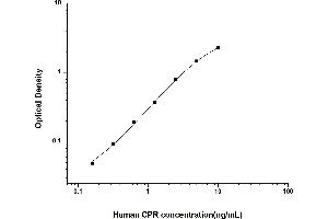 Intra-assay Precision (Precision within an assay): 3 samples with low, mid range and high level Human CPR were tested 20 times on one plate, respectively. Inter-assay Precision (Precision between assays): 3 samples with low, mid range and high level Human CPR were tested on 3 different plates, 20 replicates in each plate. Both intra-CV and inter-CV are < 10 %.