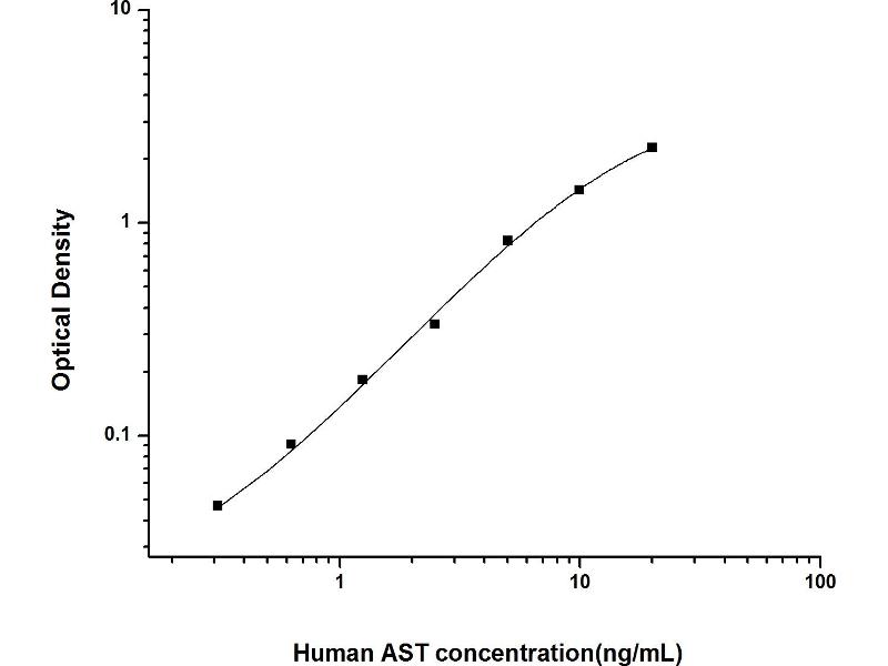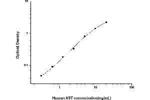 Intra-assay Precision (Precision within an assay): 3 samples with low, mid range and high level Human AST were tested 20 times on one plate, respectively. Inter-assay Precision (Precision between assays): 3 samples with low, mid range and high level Human AST were tested on 3 different plates, 20 replicates in each plate. Both intra-CV and inter-CV are < 10 %.