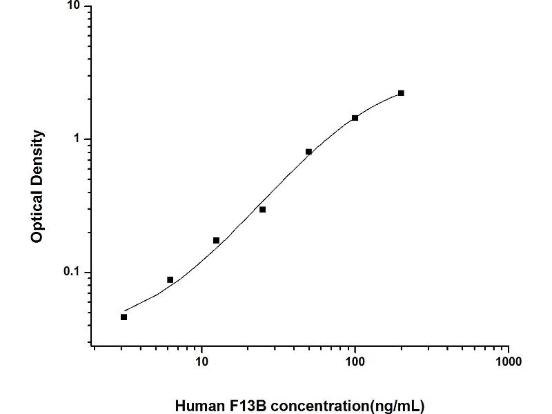 Intra-assay Precision (Precision within an assay): 3 samples with low, mid range and high level Human F13B were tested 20 times on one plate, respectively. Inter-assay Precision (Precision between assays): 3 samples with low, mid range and high level Human F13B were tested on 3 different plates, 20 replicates in each plate. Both intra-CV and inter-CV are < 10 %.