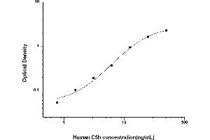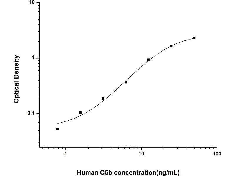Intra-assay Precision (Precision within an assay): 3 samples with low, mid range and high level Human C5b were tested 20 times on one plate, respectively. Inter-assay Precision (Precision between assays): 3 samples with low, mid range and high level Human C5b were tested on 3 different plates, 20 replicates in each plate. Both intra-CV and inter-CV are < 10 %.