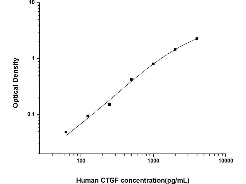 Intra-assay Precision (Precision within an assay): 3 samples with low, mid range and high level Human CTGF were tested 20 times on one plate, respectively. Inter-assay Precision (Precision between assays): 3 samples with low, mid range and high level Human CTGF were tested on 3 different plates, 20 replicates in each plate. Both intra-CV and inter-CV are < 10 %.