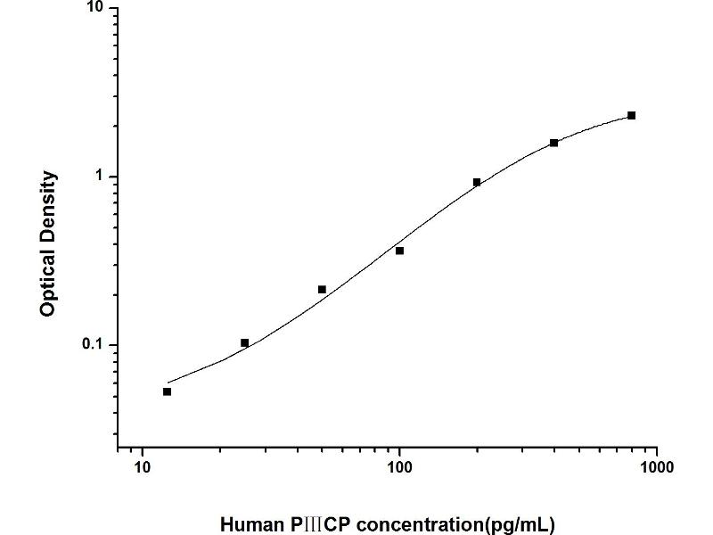 Intra-assay Precision (Precision within an assay): 3 samples with low, mid range and high level Human PIIICP were tested 20 times on one plate, respectively. Inter-assay Precision (Precision between assays): 3 samples with low, mid range and high level Human PIIICP were tested on 3 different plates, 20 replicates in each plate. Both intra-CV and inter-CV are < 10 %.
