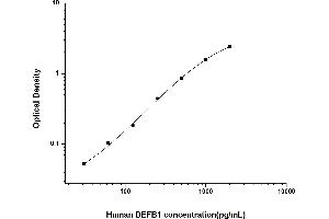 Intra-assay Precision (Precision within an assay): 3 samples with low, mid range and high level Human DEFB1 were tested 20 times on one plate, respectively. Inter-assay Precision (Precision between assays): 3 samples with low, mid range and high level Human DEFB1 were tested on 3 different plates, 20 replicates in each plate. Both intra-CV and inter-CV are < 10 %.