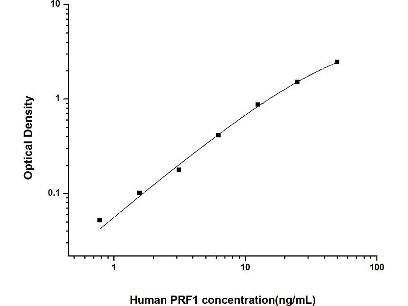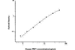 Intra-assay Precision (Precision within an assay): 3 samples with low, mid range and high level Human PRF1 were tested 20 times on one plate, respectively. Inter-assay Precision (Precision between assays): 3 samples with low, mid range and high level Human PRF1 were tested on 3 different plates, 20 replicates in each plate. Both intra-CV and inter-CV are < 10 %.