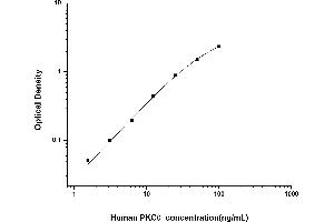 Intra-assay Precision (Precision within an assay): 3 samples with low, mid range and high level Human PKCθ were tested 20 times on one plate, respectively. Inter-assay Precision (Precision between assays): 3 samples with low, mid range and high level Human PKCθ were tested on 3 different plates, 20 replicates in each plate. Both intra-CV and inter-CV are < 10 %.