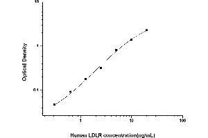 Intra-assay Precision (Precision within an assay): 3 samples with low, mid range and high level Human LDLR were tested 20 times on one plate, respectively. Inter-assay Precision (Precision between assays): 3 samples with low, mid range and high level Human LDLR were tested on 3 different plates, 20 replicates in each plate. Both intra-CV and inter-CV are < 10 %.