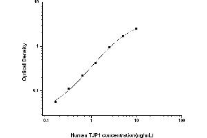 Intra-assay Precision (Precision within an assay): 3 samples with low, mid range and high level Human TJP1 were tested 20 times on one plate, respectively. Inter-assay Precision (Precision between assays): 3 samples with low, mid range and high level Human TJP1 were tested on 3 different plates, 20 replicates in each plate. Both intra-CV and inter-CV are < 10 %.