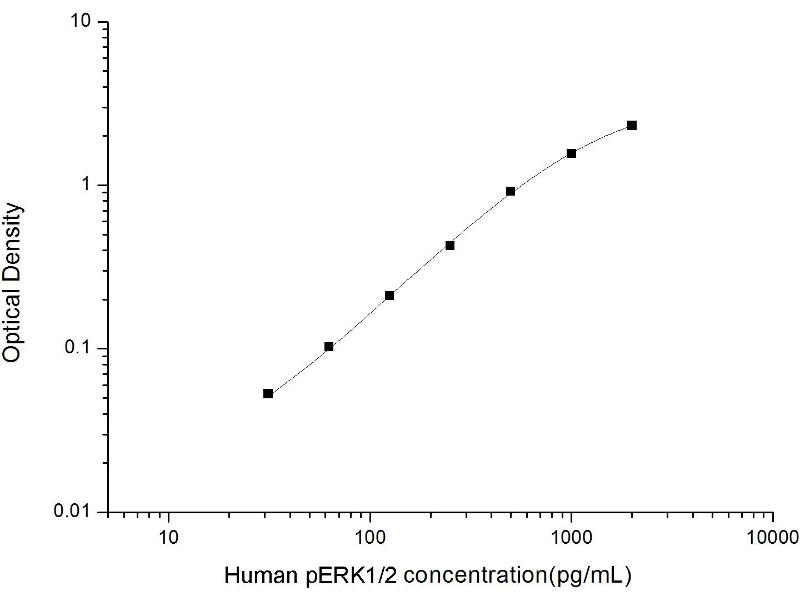 Intra-assay Precision (Precision within an assay): 3 samples with low, mid range and high level Human pERK1/2 were tested 20 times on one plate, respectively. Inter-assay Precision (Precision between assays): 3 samples with low, mid range and high level Human pERK1/2 were tested on 3 different plates, 20 replicates in each plate. Both intra-CV and inter-CV are < 10 %.