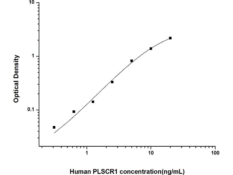 Intra-assay Precision (Precision within an assay): 3 samples with low, mid range and high level Human PLSCR1 were tested 20 times on one plate, respectively. Inter-assay Precision (Precision between assays): 3 samples with low, mid range and high level Human PLSCR1 were tested on 3 different plates, 20 replicates in each plate. Both intra-CV and inter-CV are < 10 %.