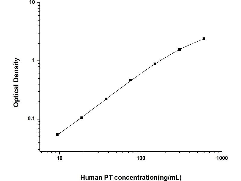 Intra-assay Precision (Precision within an assay): 3 samples with low, mid range and high level Human PT were tested 20 times on one plate, respectively. Inter-assay Precision (Precision between assays): 3 samples with low, mid range and high level Human PT were tested on 3 different plates, 20 replicates in each plate. Both intra-CV and inter-CV are < 10 %.