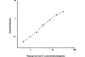 Intra-assay Precision (Precision within an assay): 3 samples with low, mid range and high level Human hs-Cys-C were tested 20 times on one plate, respectively.