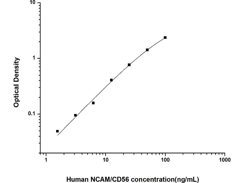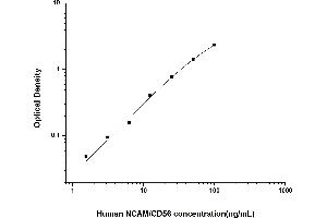 Intra-assay Precision (Precision within an assay): 3 samples with low, mid range and high level Human NCAM/CD56 were tested 20 times on one plate, respectively. Inter-assay Precision (Precision between assays): 3 samples with low, mid range and high level Human NCAM/CD56 were tested on 3 different plates, 20 replicates in each plate. Both intra-CV and inter-CV are < 10 %.